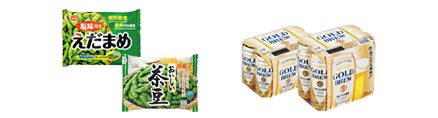 ショッパーズプライス 塩味付きえだまめ…旬の枝豆を急速冷凍しているので、いつでも採れたての美味しさを楽しめます。 CGC おいしい茶豆…品種・収穫・加工にこだわり、おいしさを追求した枝豆です。 CGCサントリー ゴールドブリュー…麦のうまみと、爽快なのどごし。